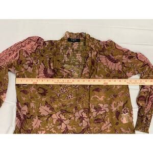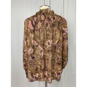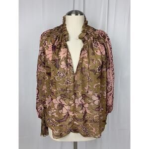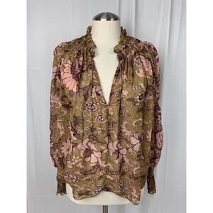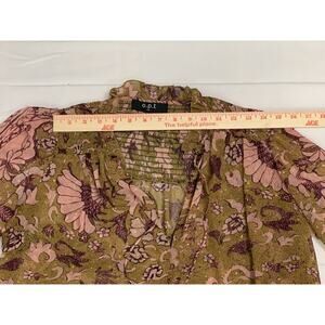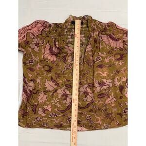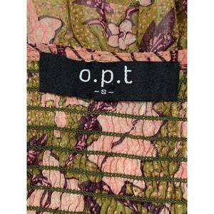 o.p.t One Pretty Time Smocked Tie Peasant Blouse Floral Metallic Threads size XS