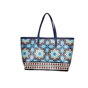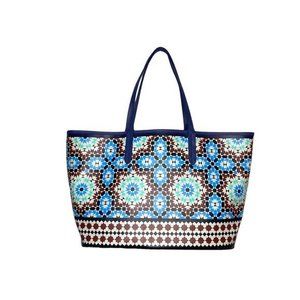 orYANY Blue Green Brown Boho Geometric Coated Canvas Large Ava Tote Bag Purse