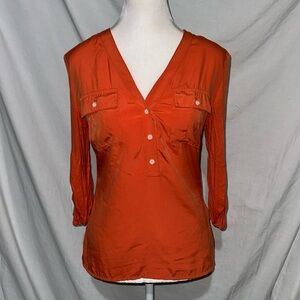orange Banana Republic v neck 1/4 or 3/4 sleeve blouse size small