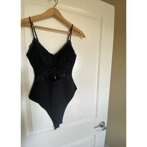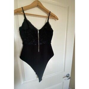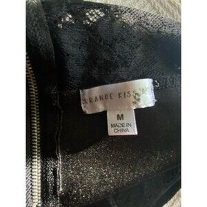 orange kiss black lace medium bodysuit onesie w/ zipper + adjustable straps NWOT