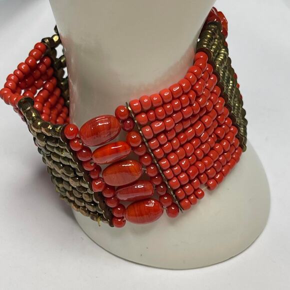 Don’t miss this costume jewelry bracelet gold and red beads beaded Egyptian boho bohemian trendy perfect for contemporary casual or career wear.