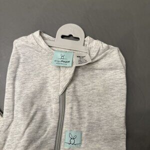 Organic cotton baby pajama and swaddle bundle. Includes (1) 1.0 TOG long-sleeved pajama (suited for room temperatures 67-75 degrees), size 3-6 months and (1) 0.2 TOG swaddle (suited for room temperatures 75 degrees F+) in size 0-3 months. Pajama made from certified organic cotton and features easy access for diaper changes. Color is grey for both. Swaddle made from certified organic cotton. Features simple zip-up design to keep baby snug and secure swaddled. Brand new. Smoke-free home.