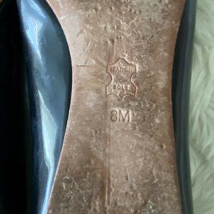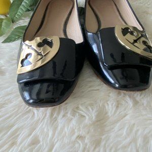 ory Burch Black Square Toe Gold Logo Patent Sz 8