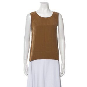 oscar de la renta Authentic Solid Brown 100% Silk Round Neck Tank Top Medium