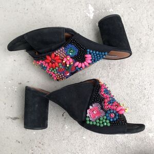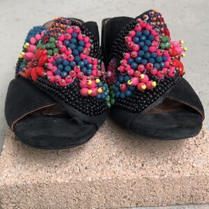 Super cute and fun and other story slides/mules. Not missing any beads anywhere Back in the hills needs slate clean up but no damage. Heel height is 3.5.
