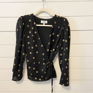& other stories | Women’s Black and Gold Medallion Wrap Vneck Blouse Size 6