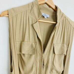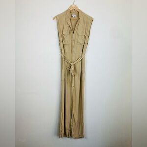 & other stories capsule tan wide leg sleeveless jumpsuit. Button front with v- neck, tie at waist and wide leg. Tan color. Size 6.