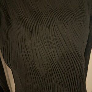 I'm selling an & other stories cropped pleated top. The material is this really cool pleated wave-like fabric that is very striking in person. The collar is also interesting, being both a high and wide neckline, where the fabric naturally rolls under a bit -- very flattering. The sleeves are a little long by design.