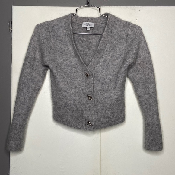 & other stories wool alpaca crop cardigan small grey bee buttons