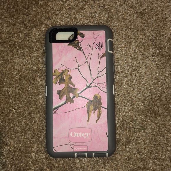 pink camo outer box case, pretty good shape. one part of inside is cracked but it still works fine and protective. the outside still fits fine and you can’t even tell!