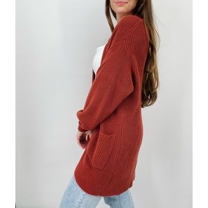 oversized boho terracotta cozy chunky knit open cardigan size XS