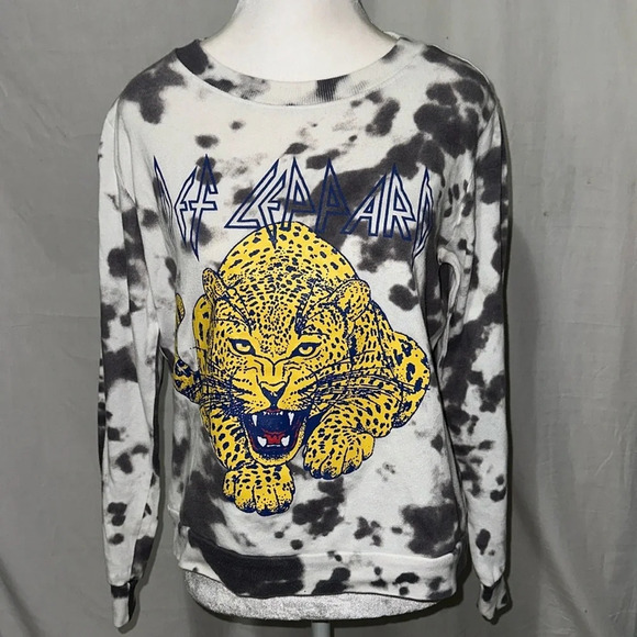 oversized gray & white tie dye Def Leppard crew neck sweater size xs