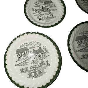 oyal China Underglaze Green Farm Scene Plates – Set of 4 – Vintage Cottagecore