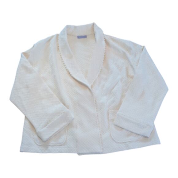 p. jamas Coat Jacket Quilted Womens Large Ivory Pima Cotton Lounge Wear Pockets