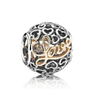 Bundle of two toned pandora charms family forever and open heart love 14k sterling silver