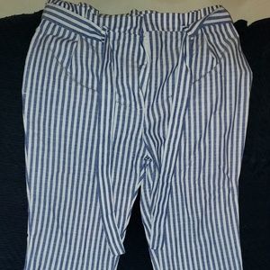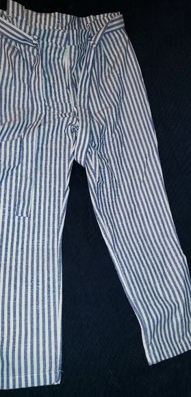 blue/ white pin strip capris linen size large true to size