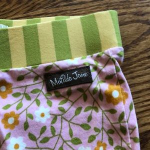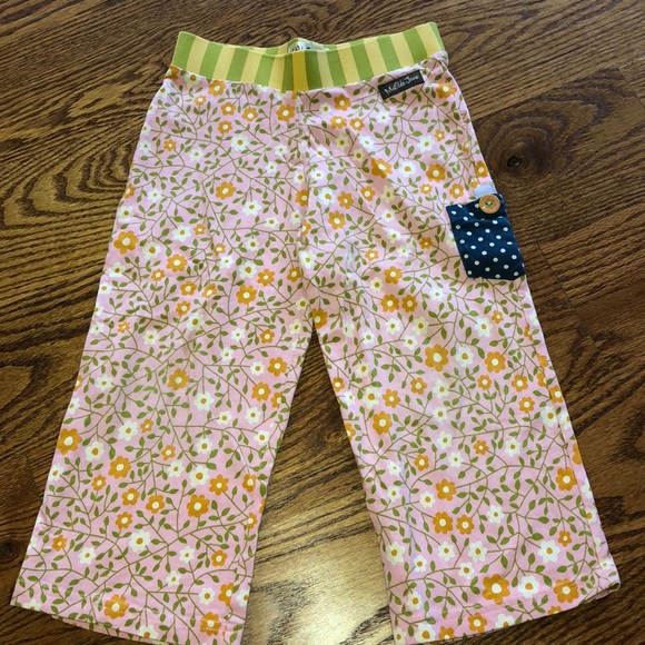 pink floral matilda jane straight legged pants , polka dot pocket on left thigh, stretchy waist band