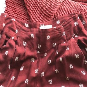 maroon pants with arrow pattern with zipper and fitted ankles