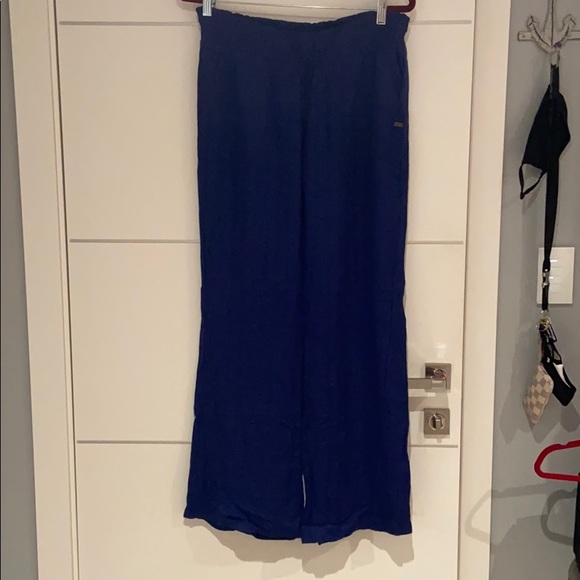 dark blue loose leggings with front and back pockets