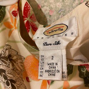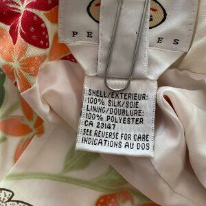 Beautifully made 100% silk with pretty floral print. Fully lined with invisible zipper and inside button at the side of the waist. Measurements are 26 " waist, 25" inseam.