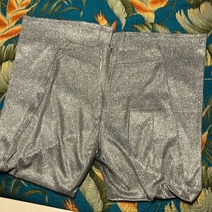 Silver pants with zipper back, elastic waist as well. Very comfortable fit