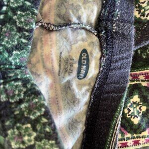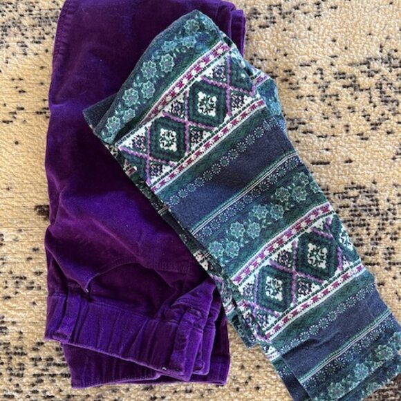 Gymboree Purple velvet pants worn once, old navy leggings worn but still in good shape not holes or stains, size 6-7. H & M cream coruroy pants with stars they are kind of sliver/gold. never worn. they say size 5-6 but they are long so i would say 6-7.