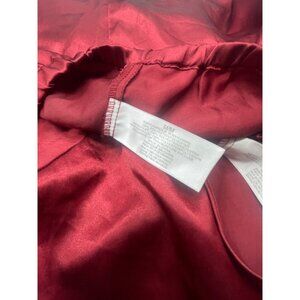 This stylish red pajama set includes pants and a sleeveless shirt, crafted from shiny polyester with elastic for comfort. Perfect for lounging or sleepwear, this set offers a relaxed fit in size medium.