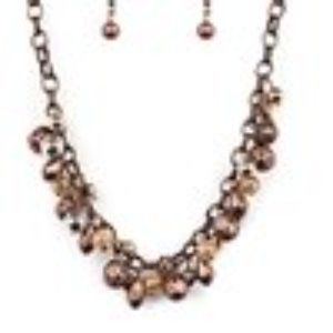 Featuring shiny, faceted, and mesh finishes, mismatched copper, gold, and gunmetal beads trickle below the collar for an edgy industrial look. Features an adjustable clasp closure.