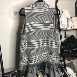 𝅺paper Crane Gray Chevron Striped Fringe Vest