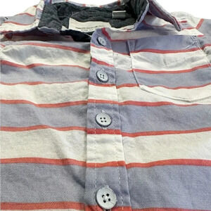 Short sleeved striped button down from Paper Denim & Cloth. Classic polo collar; roll cuff sleeves; 100% cotton.