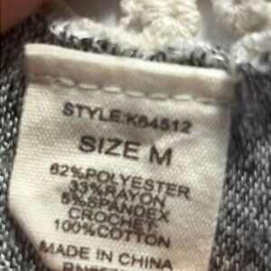 Body: Polyester, Rayon Spandex... Crochet: Cotton