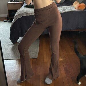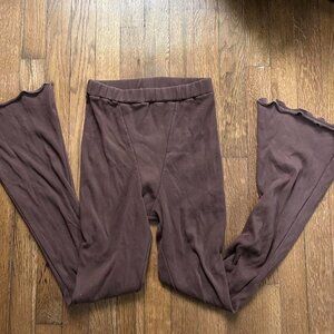 Ribbed Flare Style Pants with Boyfriend Brief Detailed Design. Mellow Stitch and Slit At Hem. Rich, Soft and Stretchy Fabric in Deep Brown Will Cover Your Booty Like a Heaven.• Cotton Rib Jersey-95% Cotton 5% Spandex.