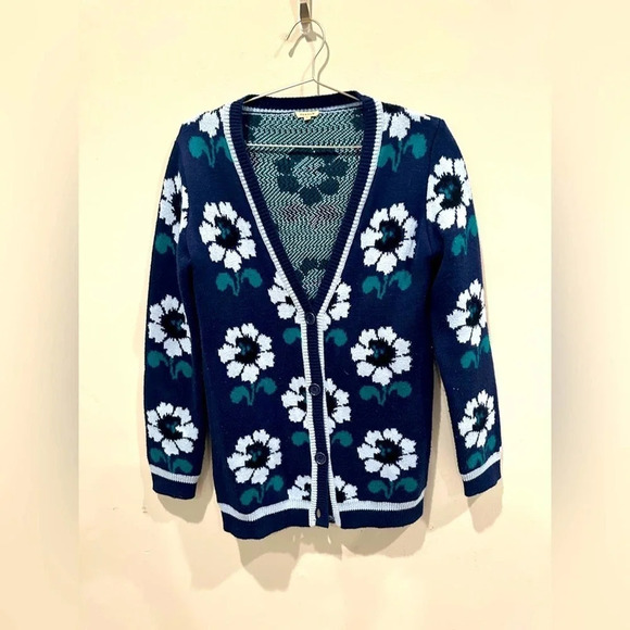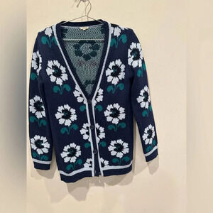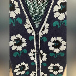 p.a.r.o.s.h Navy Wool Sweater Cardigan w/ Flowers. Size Small.