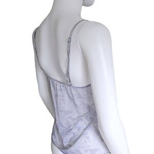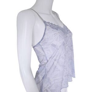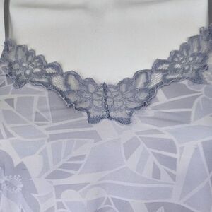 soft sheer baby tank with lace trim, faded floral, and adjustable straps