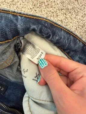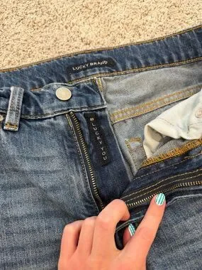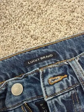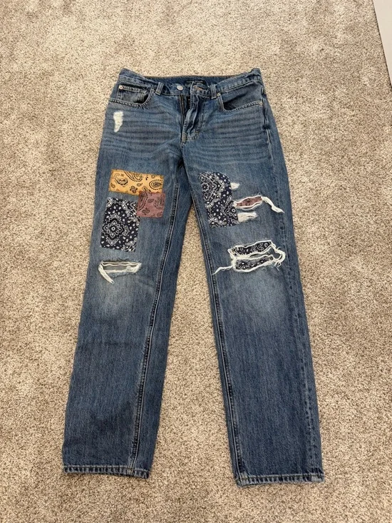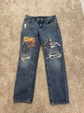 patchwork jeans from Lucky Brand. distressing and patches on the front and back. worn a few times. size 2/26R. so cute for fall