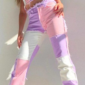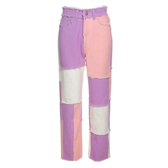Trendy patchwork jeans with quality buttons and pockets. Perfect for this winter season.