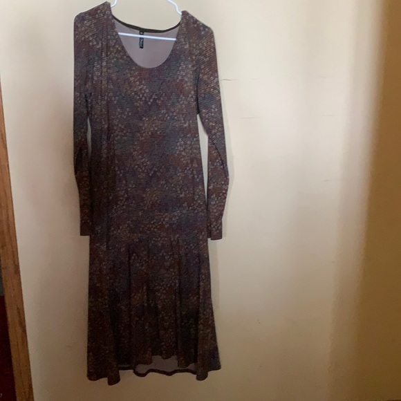 cute patterned long sleeve dress. gives blouse effect