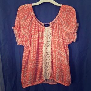 pink pattern blouse with white lace