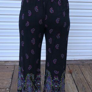 cute, black pants, with fun pink, green, and blue patterns! SO comfy! I'm 5'9 and they fit perfect length wise.