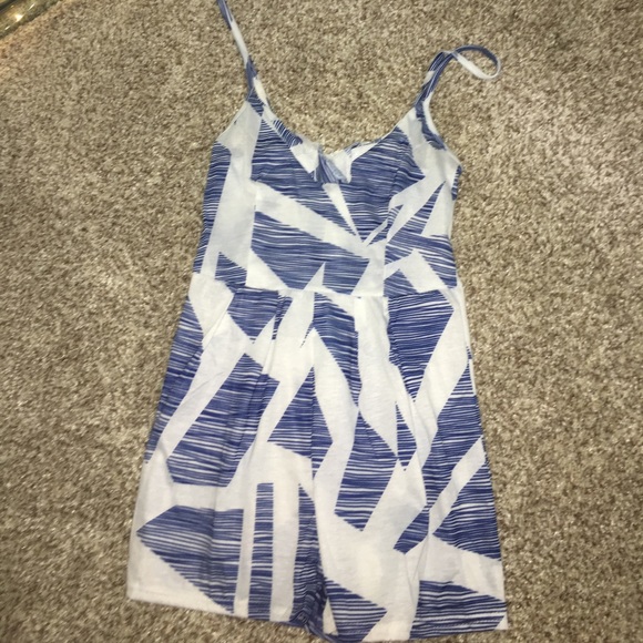blue and white pattern romper