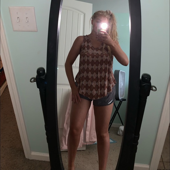 really pretty boutique patterned tank top with cool tie in the back!! only worn a few times!! perfect for summer!!