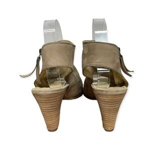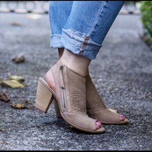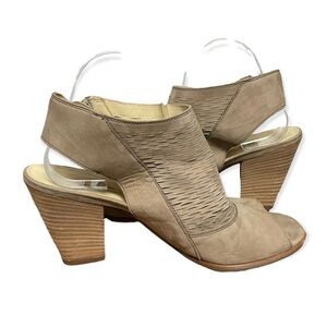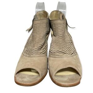 Paul Green Taupe Suede Peep Toe Zippered Stacked Heel Sandal