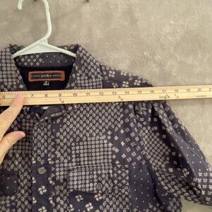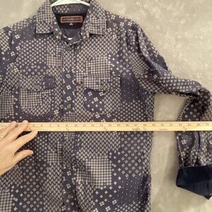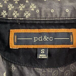 pd&c Men’s S Western Blue White Long Sleeve Button Up Dual Pocket Casual Shirt