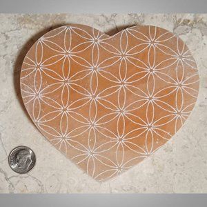 peach SELENITE charging plate Flower of Life heart crystal stone rock