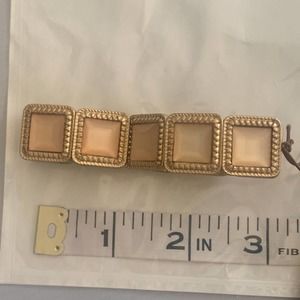 peach square gem set in gold tone bracelet NWT
