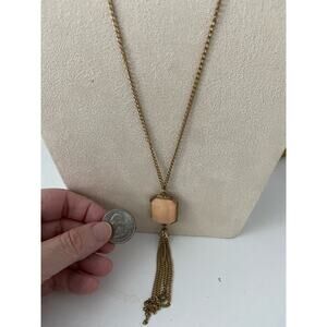 Gorgeous retro 70s style tassel fringe necklace with opalescent pendant in good condition flaws are pictured some tarnish and scuffs great for holidays going out parties school work vacation boho twee casual preppy skater clasp free