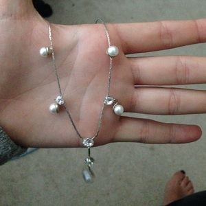 pearl necklace with diamond gems
