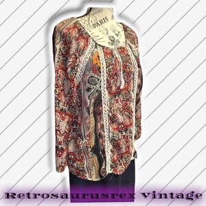 Hippy Tanzara Bohemian Earth Tones Semi Sheer Summer Peasant Top, Large