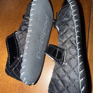 The perfect Black shoe for your little fashionista. Stylish and comfortable. Approved by the American Podiatric Medical Association for promoting healthy foot development. Features patent leather and quilted design. Size 18-24 months. Brand new. Smoke-free home.