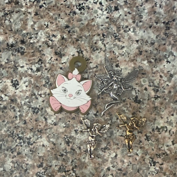 Cute pink cat charm designed for kids. Features soft pink and white enamel details. Lightweight accessory that adds playful style to backpacks and bags. Easy to attach and kid-friendly.